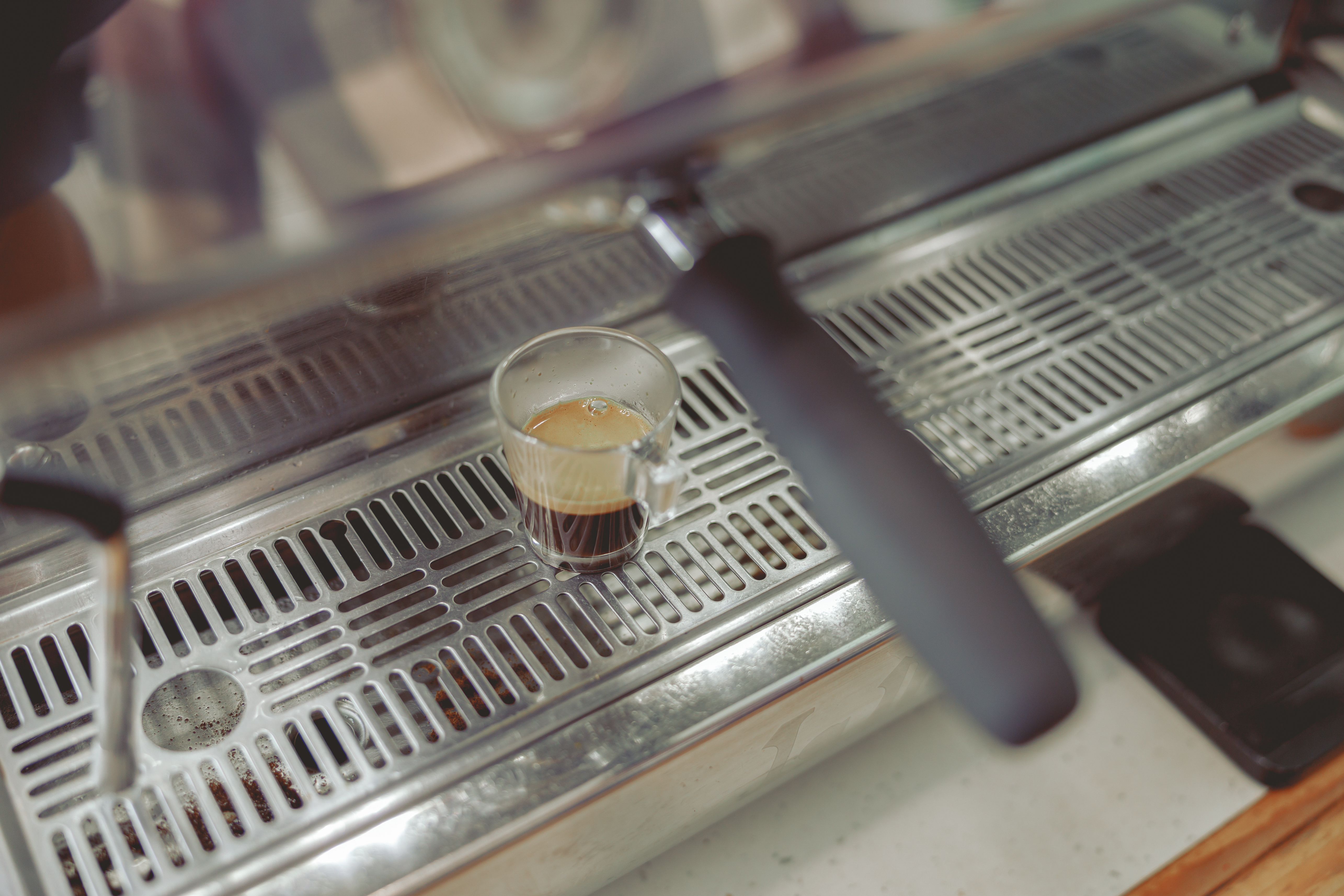 Getrunken wird der Americano aus klassischen Espressogläsern.