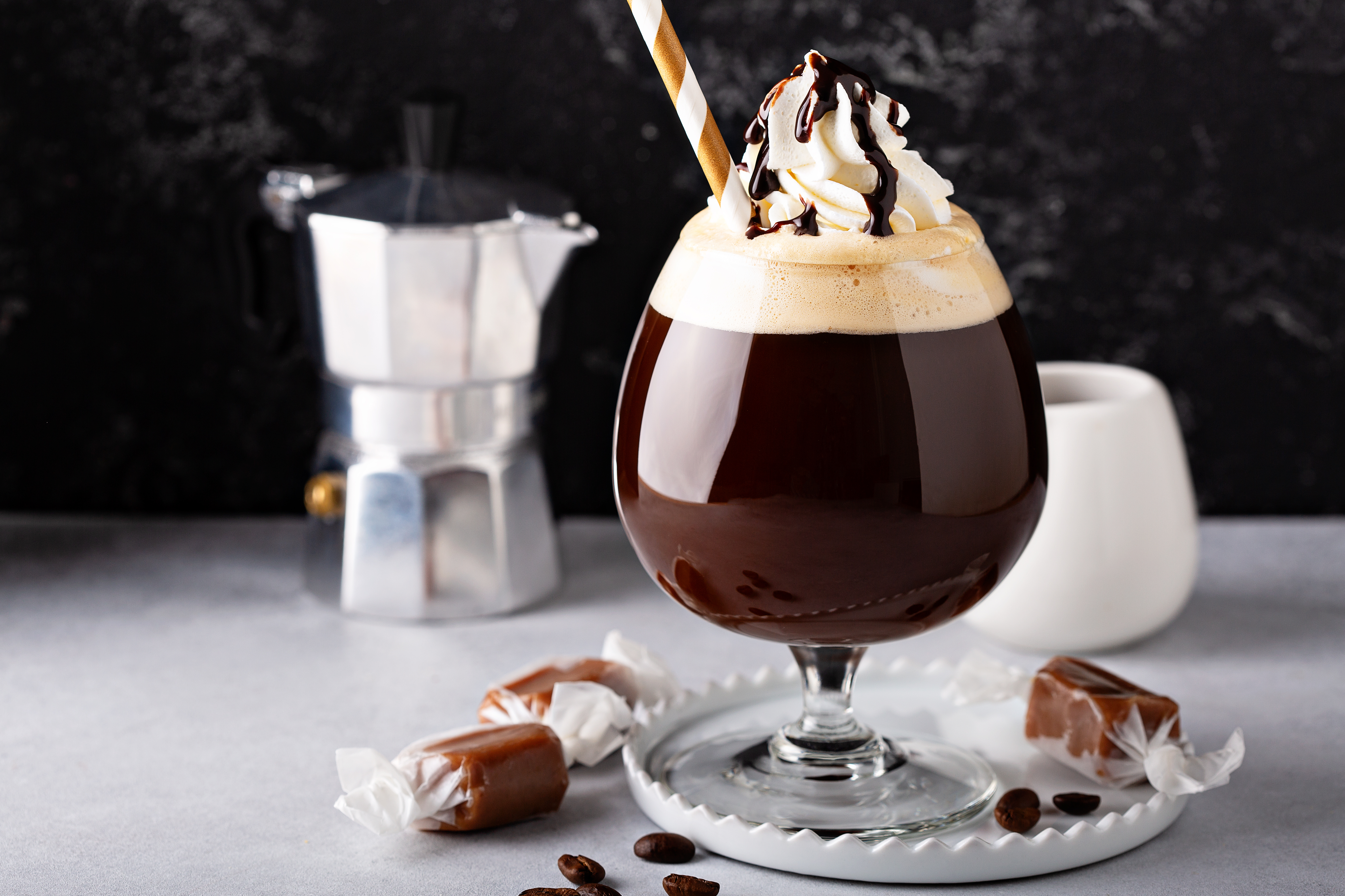 Dieses Dessert-ähnliche Kaffeegetränk ist perfekt für die Naschkatzen unter uns und bietet eine verlockende Kombination aus Aromen. Der Mokka ist ein kleines Stück Himmel für diejenigen, die Kaffee als süße Versuchung erleben möchten.
